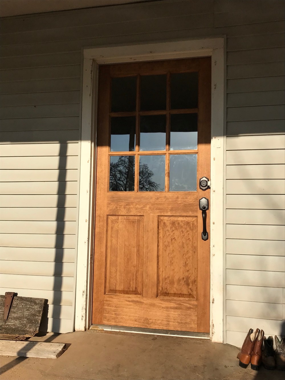 Reflecting on the project in its entirety, here are my takeaways. You can have a beautiful home with a beautiful price tag to match, you just might have to DIY a little! Remember this door totaled out at 70% less than its plan b counterpart, and 85% less than plan a (the dream door). But really, this was a pretty simple weekend project! I would say inspect your door closely when choosing which way it’s going to open. Before the stain is applied, it’s hard to see the wood grain and character (this was a light fir wood after all). I really didn’t pay much attention and let Husband get to work on the installation part. After stained and hung, I actually like the interior side of my door better than the exterior!