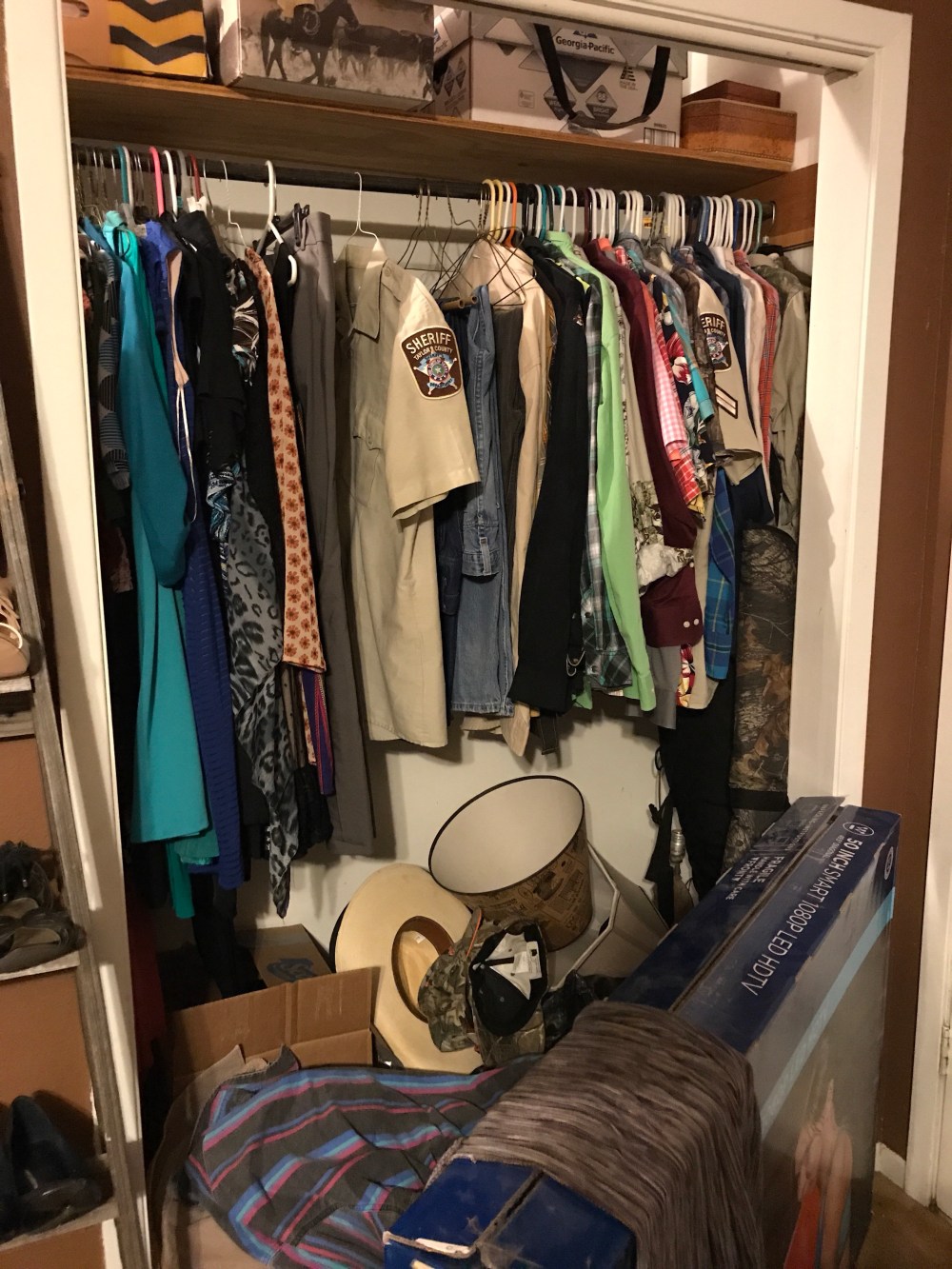 Okay maybe not so much! But it has possibility! Wade and I are not used to sharing a closet and this one is funky! Here’s his side: