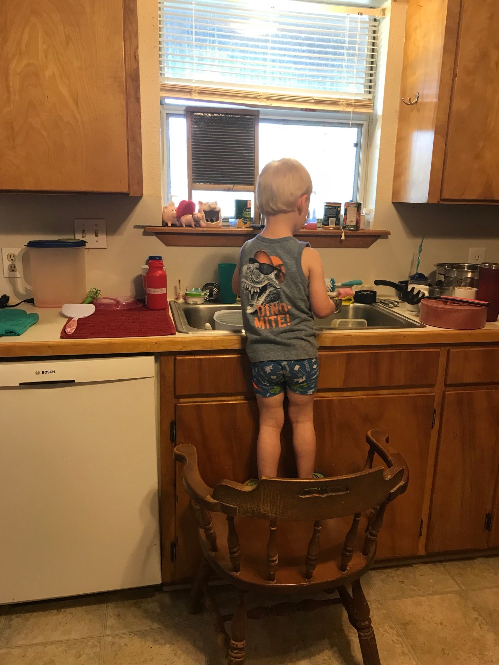 Third, don’t be afraid to ask for help! Chisum loves helping! Yes, sometimes letting a three year-old do the dishes can get kinda messy! But parents we are raising these babes to grow into self-sufficient human beings! Use bribery! My kid will work for a quarter!