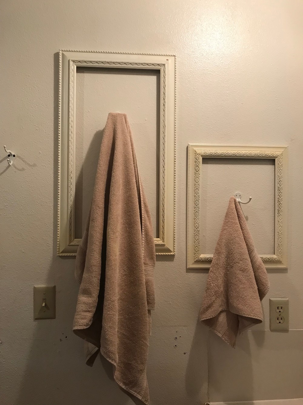 Here I chose to frame out my towel hooks and make them look like living art, adding a fun little bit of interest!