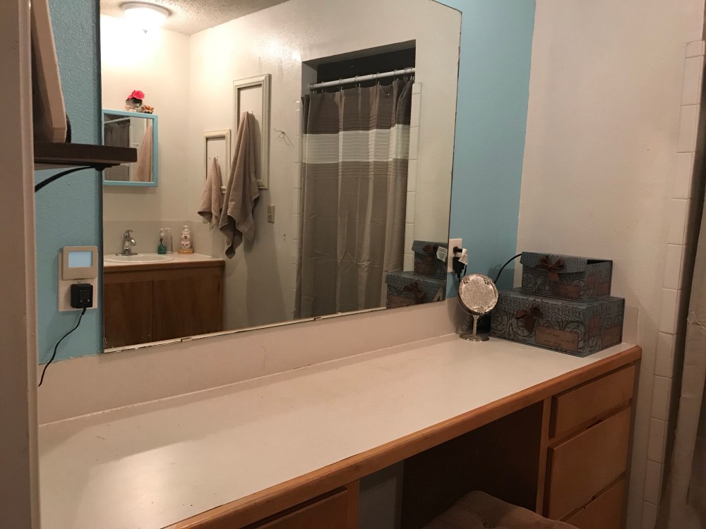 I may have started with the two smallest rooms, the hallway and my bathroom, but these two rooms have to work hard for me every single day. There’s something magically deceptive to the mind’s eye when the floors and cabinets are void of objects-it suddenly appears clean and pulled together. And for me, starting my day and ending my day in a messy bathroom, is a lot like crawling into an unmade bed, which I know will make me restless! And I need all the beauty sleep I can get!