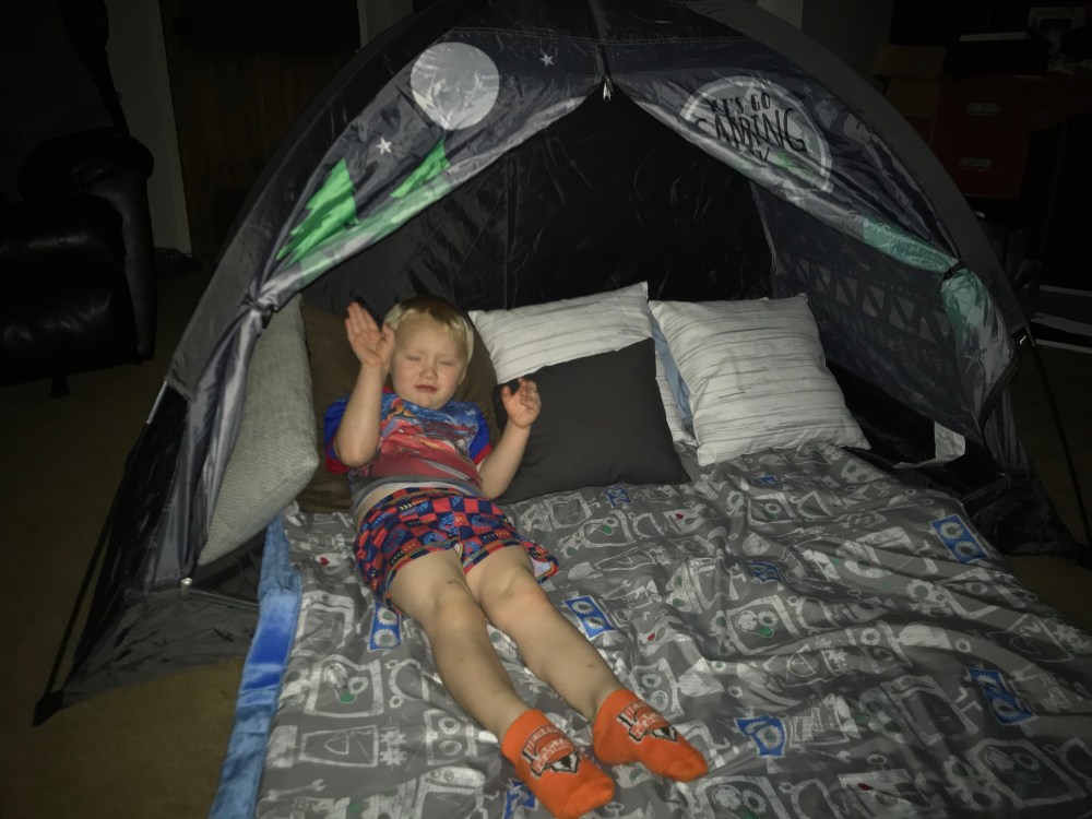 We also did a little campfire and toasted marshmallows and stargazed! Followed by putting up C’s little tent and watching ghost movies (Casper and Scooby Doo) right in our living room!